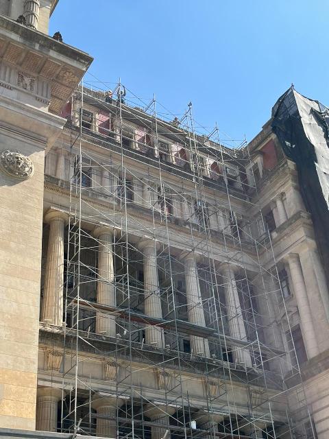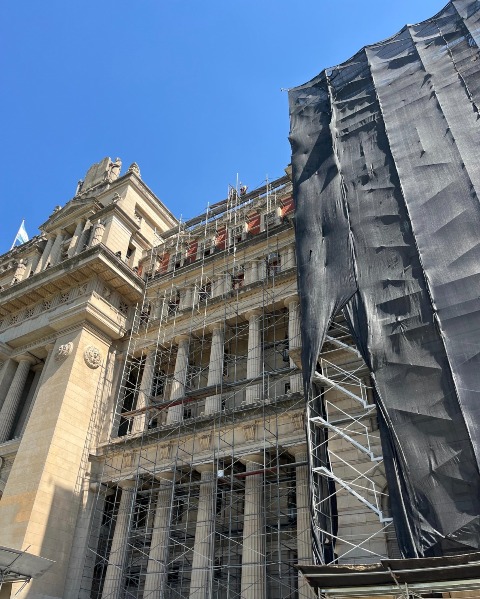 La Corte Suprema sigue avanzando con las obras destinadas al mantenimiento integral de las fachadas sobre las calles Talcahuano y Tucumán del Palacio de Justicia, máxima sede del Poder Judicial y reconocido como Monumento Histórico Nacional por su valor arquitectónico e institucional.