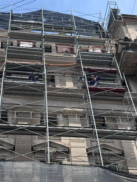 Continúan los trabajos de mantenimiento en las fachadas del histórico edificio.